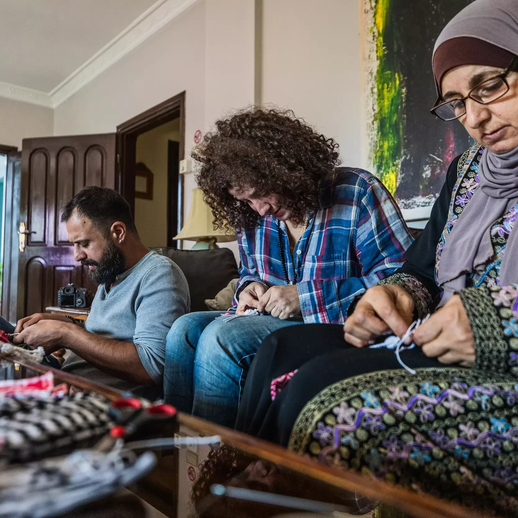 The traditional Jordanian headdress, Kuffiyeh, is a traditional craft that is nowadays maintained by older women only. Take yourself to learn and experience how Hadab is done on a sample bookmark that they can take home with them.